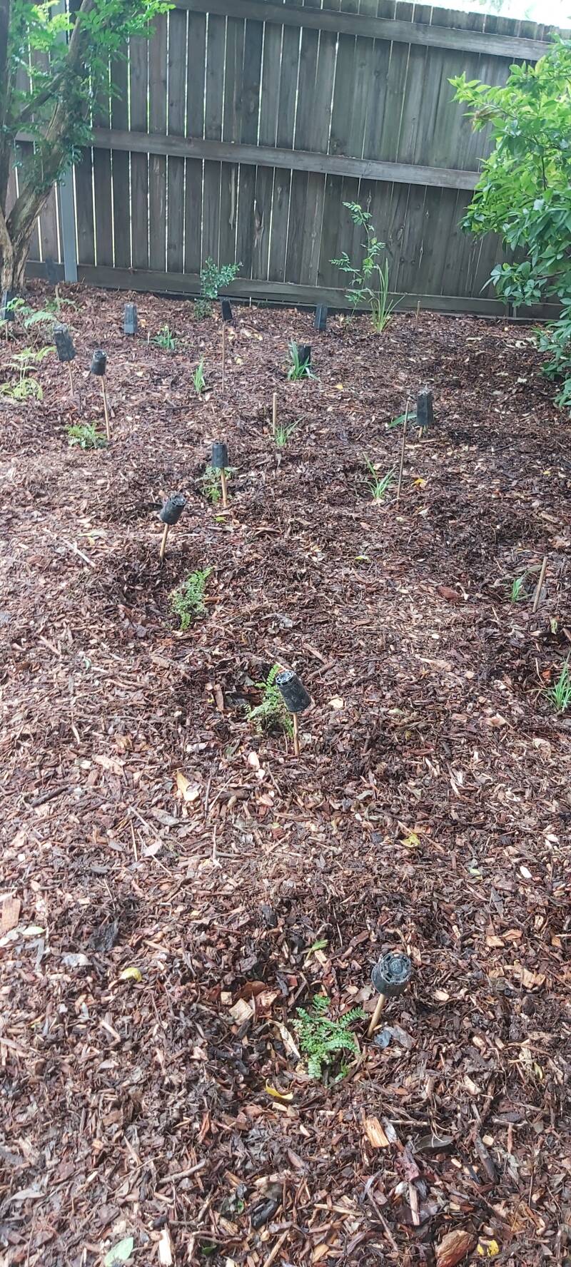 Brush Turkeys are common in Brisbane and are a protected species ,when they turn up they like to scratch at the new plants often ending up in plant casualties. Temporary plant protectors made from recycled plastic mesh and bamboo stakes can be put in place, keeping them protected until they establish. Brush Turkeys are important to our ecosystems, they distribute the beneficial fungal networks which improve soil conditions for plant health.